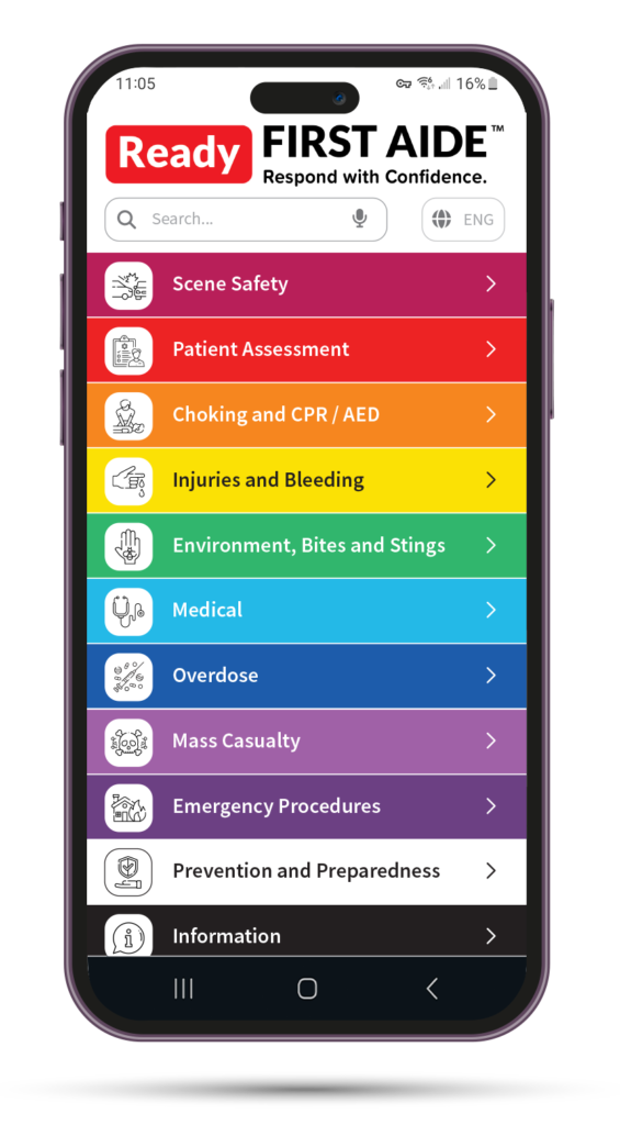 In an effort to assist and improve our current challenges the Get Ready Team has developed the Ready FIRST AIDE™ web application. This gives bystanders immediate access to first aid procedures so they can respond with confidence and start first aid BEFORE 9-1-1 Emergency Services arrive.