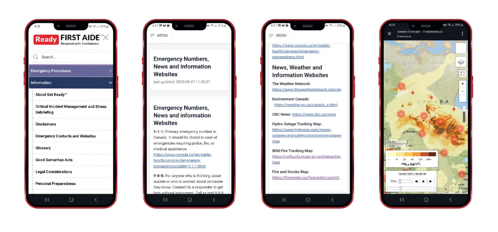 Disasters and regional emergencies are happening with greater frequency and intensity. The wildfires and related smoke are a significant concern to many people. Our Ready FIRST AIDE™ web application has much then then 140 first aid treatment checklists and videos, it also has very relevant sections on home preparedness tips, procedures for larger scale incidents and disasters. In addition, we have a created an emergency contact number, news and information section with links to official phone numbers and websites so people can stay informed and anticipate what Is and what is going to impact their community and the communities of loved ones.